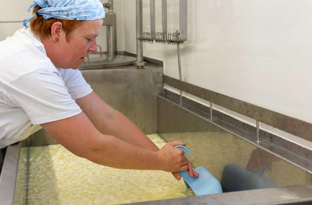 Mit der mobilen Käserei wird Milch direkt auf den Milchhöfen zu Käse verarbeitet. Zum Reifen geht es nach Kentzlin. Der Käse kann von den Milchhöfen direkt vermarktet werden.